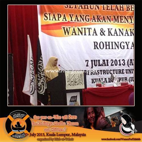 وكالة أنباء الروهنجيا: أنطلق في العاصمة الماليزية كوالالمبور مؤتمر شابات حزب التحرير، وذلك يوم أمس الأحد، تحت عنوان: بعد مضي عام من المجازر، من سينقذ نساء وأطفال الروهنجيا؟، حيث بدأت الأخوات مؤتمرهن بآيات من القرآن الكريم، وبعدها بدأ الحديث عن مسلمي روهينجا والحال الذي وصلوا له في ظل وضعنا الراهن ، ووضعن أيديهن على المرض وكيف أن القومية والوطنية لها أثر كبير في التعصب للبلد والدولة التي يعيش فيها كل مسلم وأنه لا دخل له بما يحدث حوله في بلاد المسلمين طالما أن الأمر بعيد عن مكان مسقط رأسه.