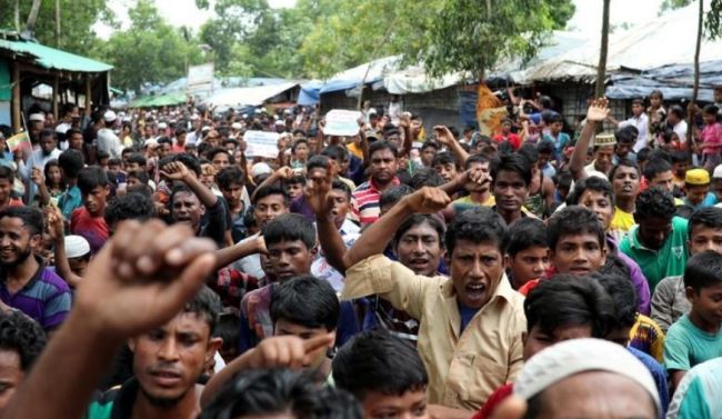 وكان أكثر من 700 ألف من أفراد أقلية الروهينجا المسلمة المضطهدة قد فروا من ولاية أراكان في أعقاب حملة قادها الجيش في ميانمار في أغسطس آب من العام الماضي واستقروا في مخيمات شاسعة للاجئين في بنجلادش وذلك وفق تقديرات الأمم المتحدة. وبقي مئات الآلاف داخل ميانمار في مخيمات للنازحين والقرى.